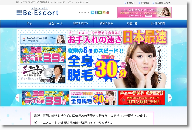 ビーエスコートは株式会社セピア・クワーティー・インターナショナルが運営する、主に東海地方で店舗を展開している脱毛サロンです。